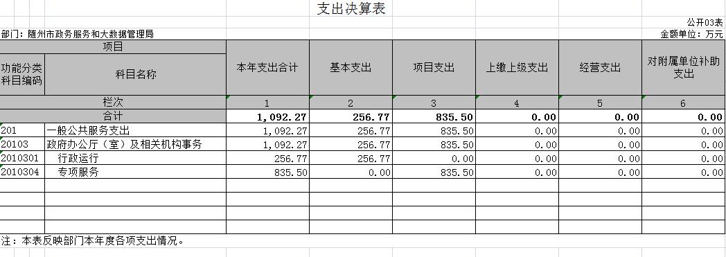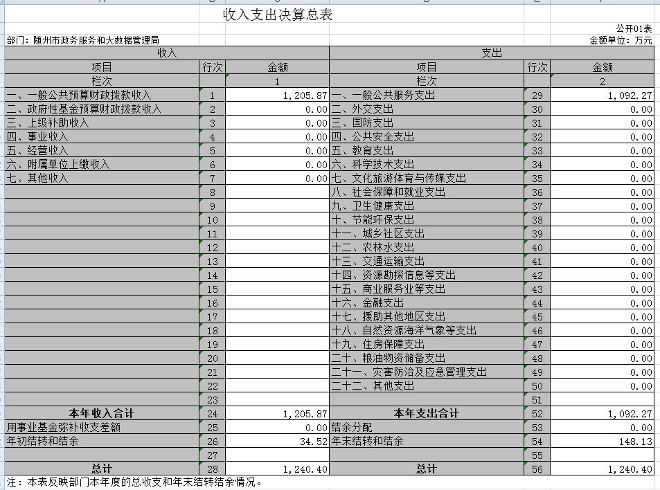 第四部分? 隨州市政務服務和大數據管理局2019年決算表