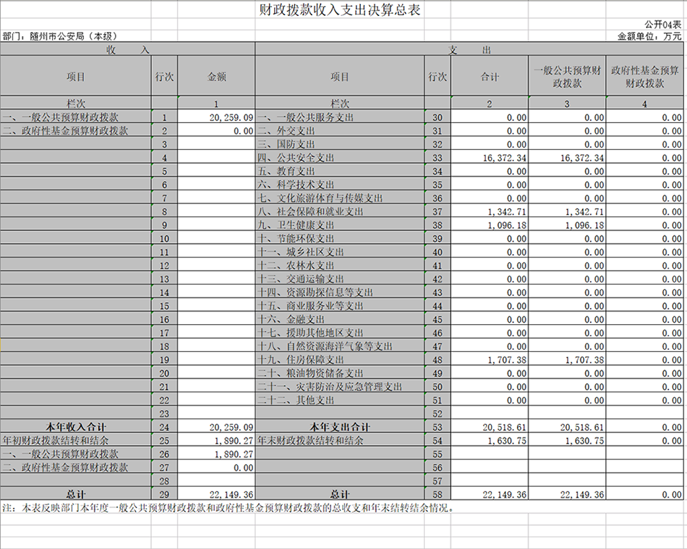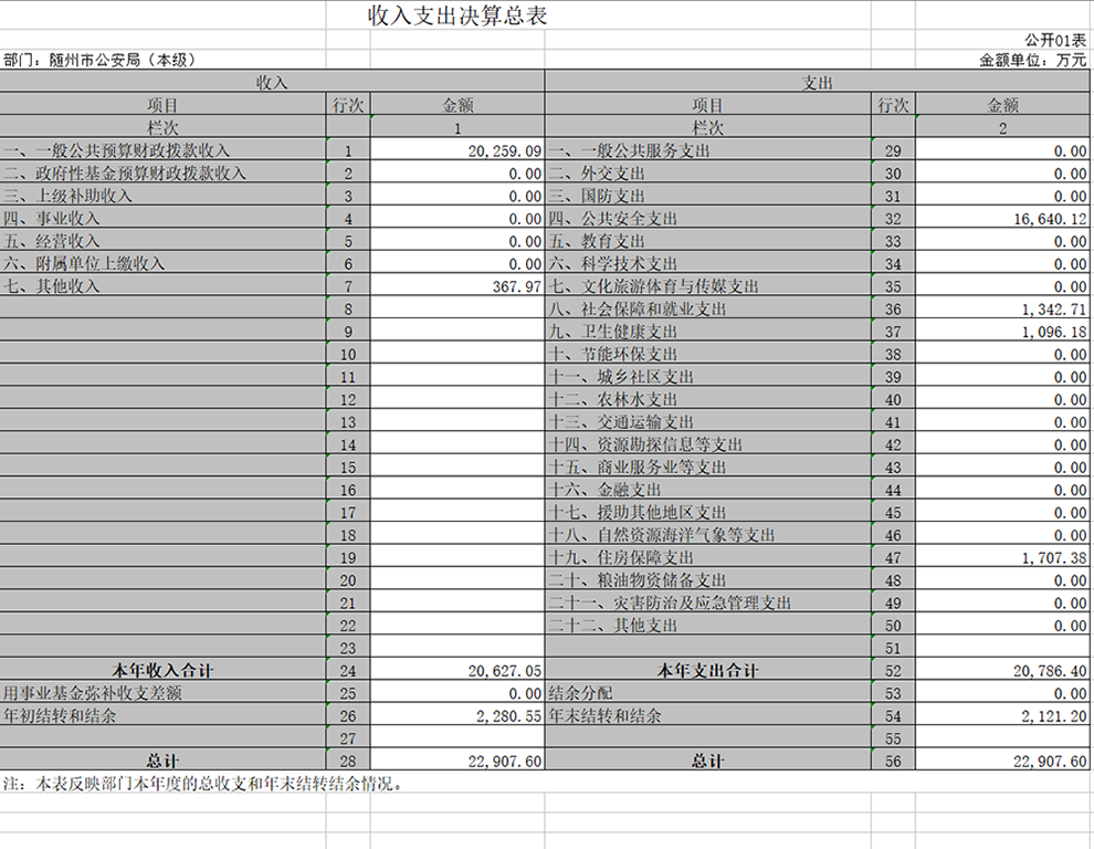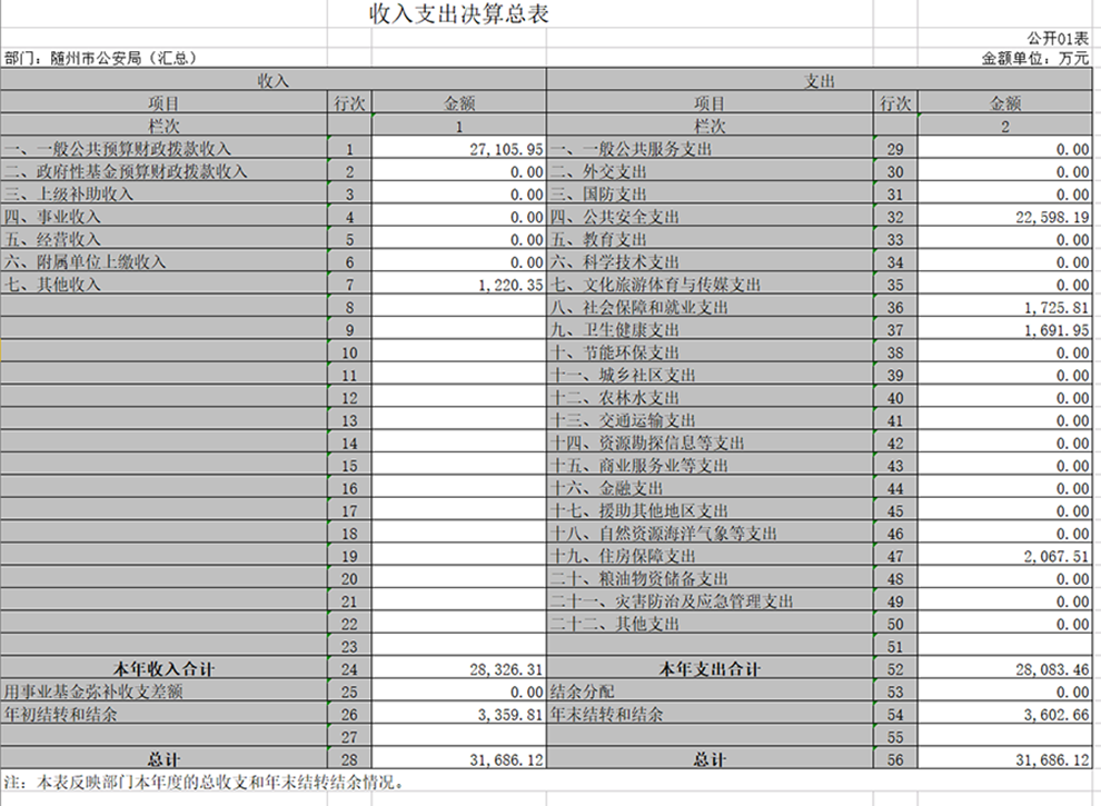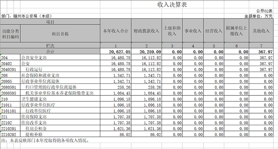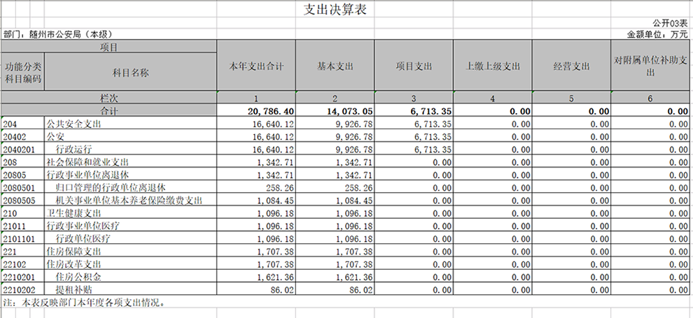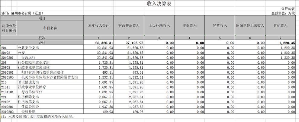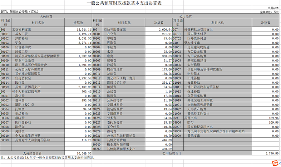 隨州市公安局本級2019年決算公開報告