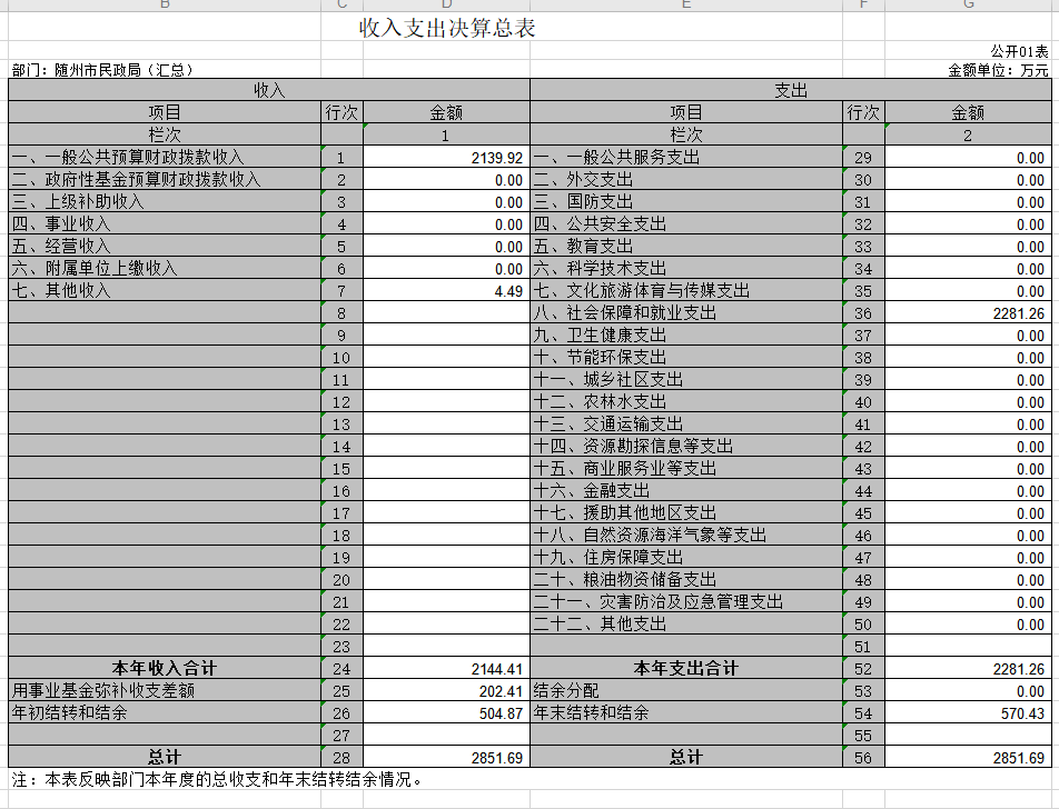 ? 本年度隨州市民政局(匯總)及隨州市民政局(本級)無政府性基金預(yù)決算收支情況。