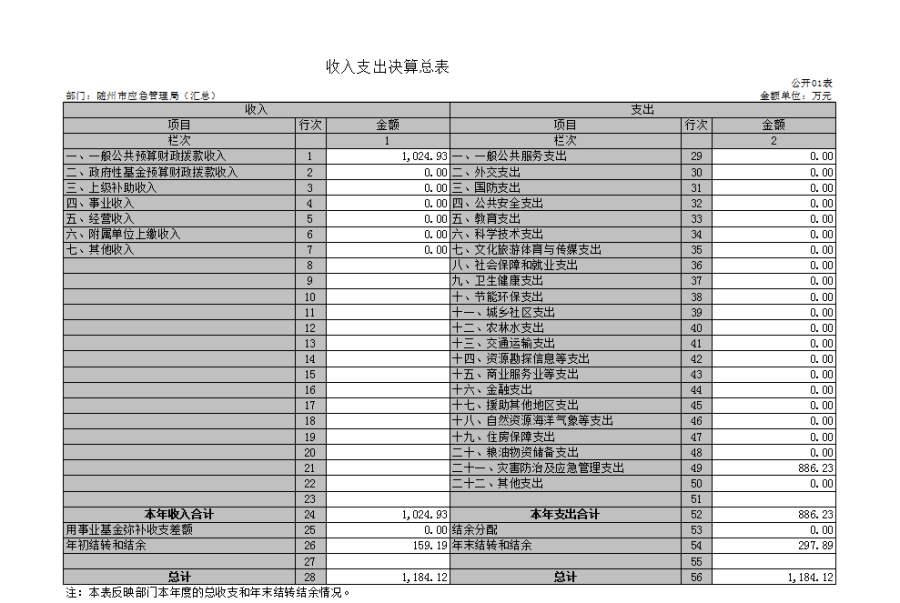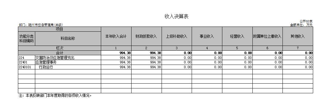 第三部分??隨州市應(yīng)急管理局2019年部門決算表