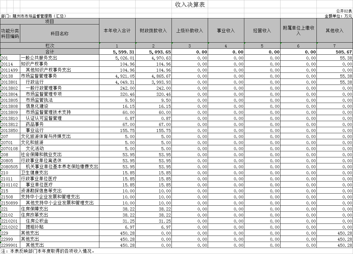 1、系統匯總:收入5599.31萬元,其中財政撥款5093.64萬元,占總收入的90.96%,其他收入505.66萬元,占總收入的9%。比上年減少2000.19萬元,下降26.32%。比年初預算減少2719.82萬元,下降32.69%。
