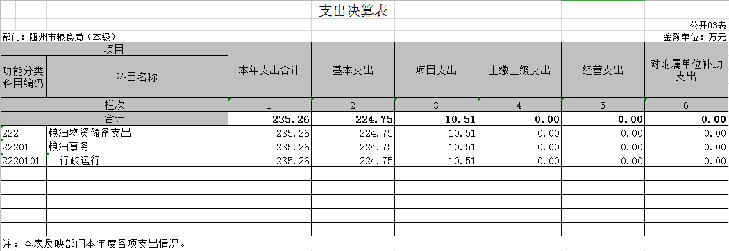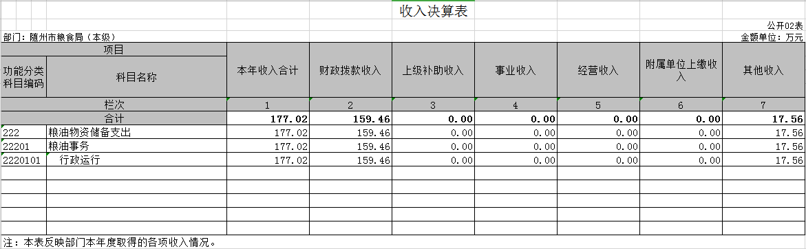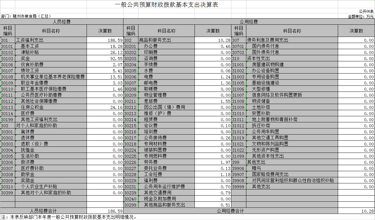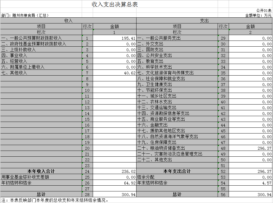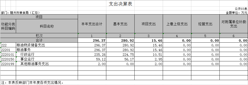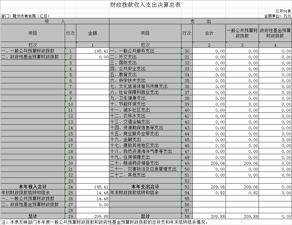 ?????????????????隨州市糧食局2019年部門決算公開表(匯總)