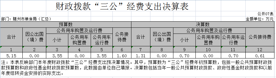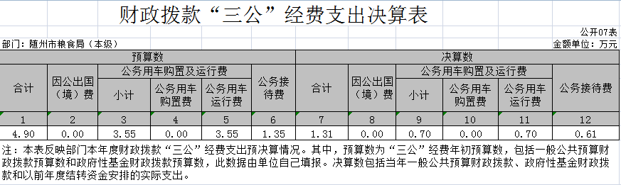 附件:隨州市糧食局2019年度部門決算公開表(本級)