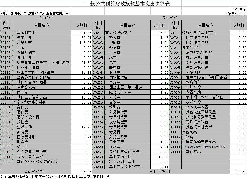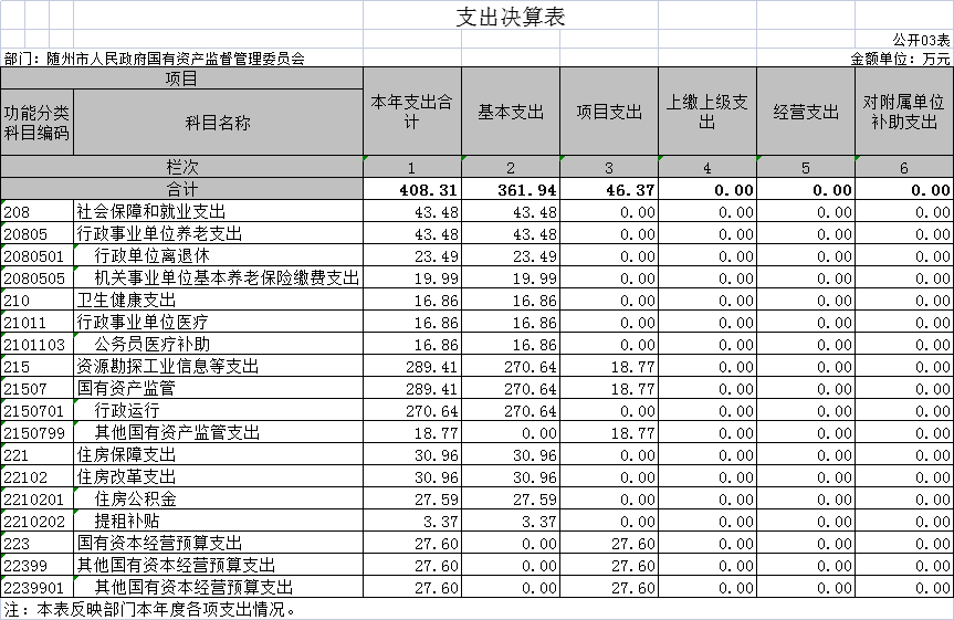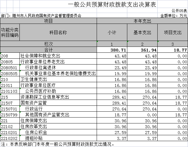 隨州市國資委2020年部門決算公開