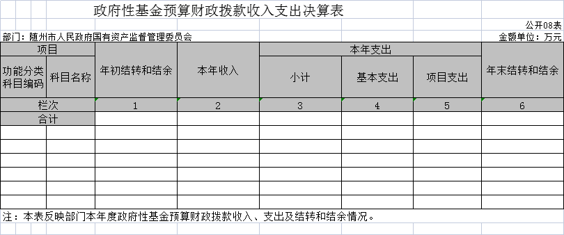 我委2020年度無政府性基金財政撥款收入,決算公開表08表為空表。