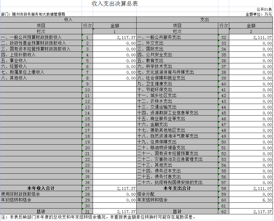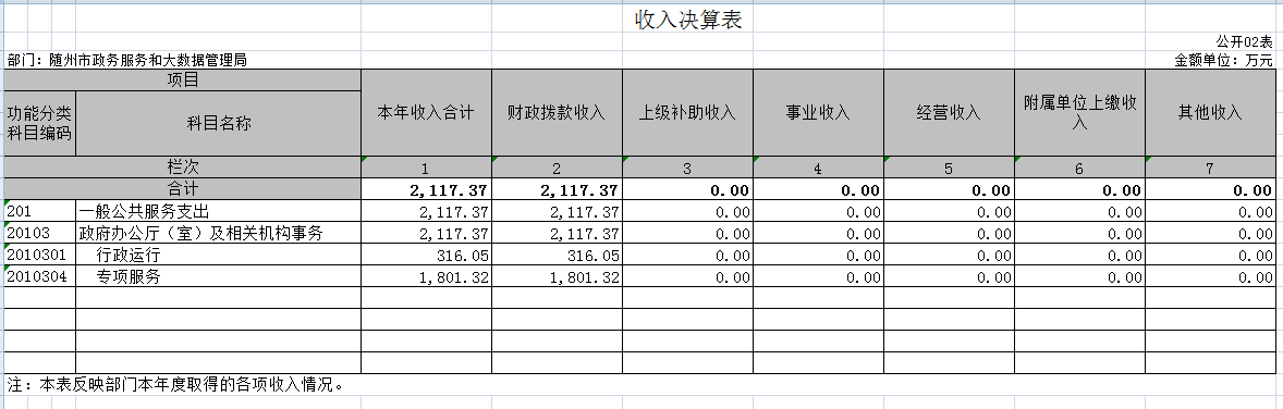 第三部分 隨州市政務服務和大數據管理局2020年決算表