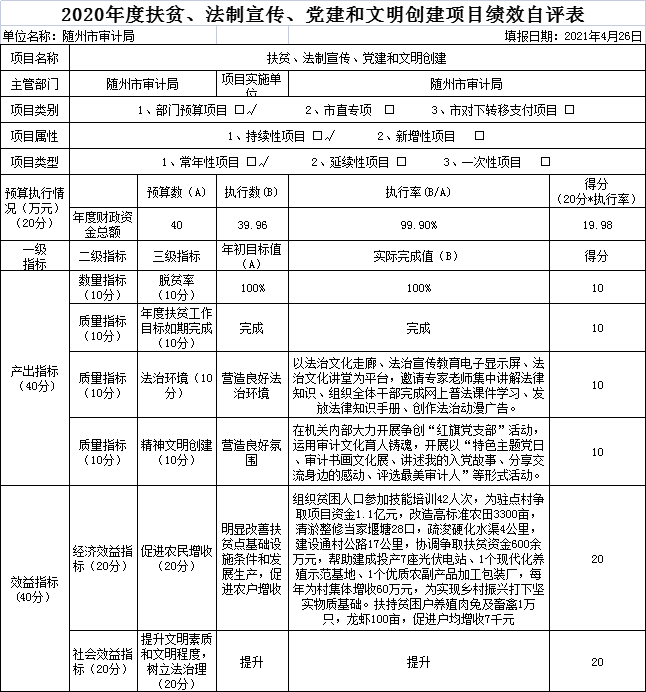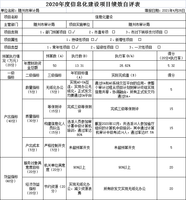 附件:2020年度隨州市審計局項目支出績效自評表