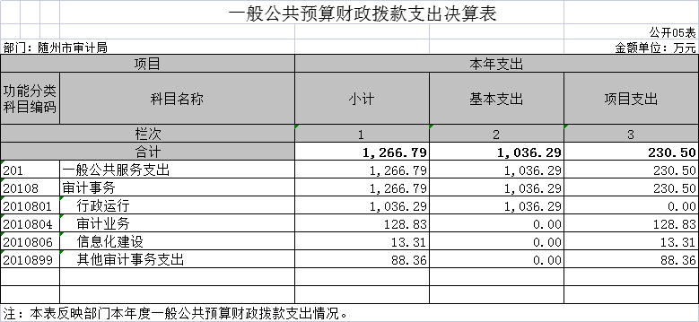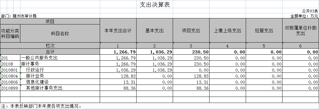 隨州市審計局2020年部門決算公開