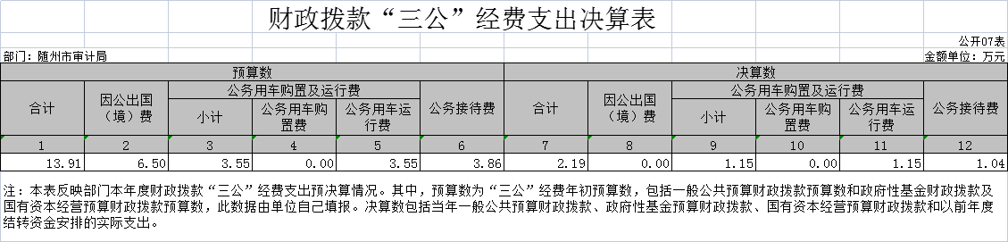 七、財政撥款“三公”經(jīng)費支出決算表(公開表07表)
