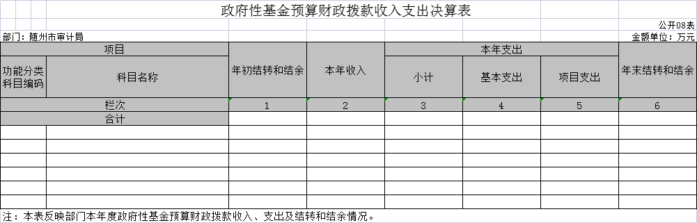 八、政府性基金預(yù)算財政撥款收入支出決算表(公開表08表)