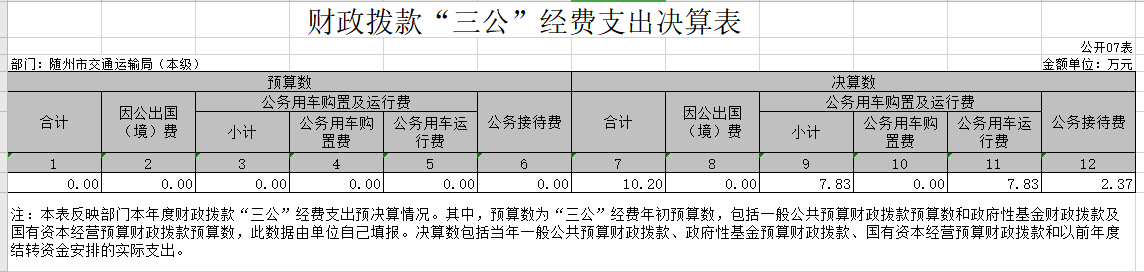 七、財(cái)政撥款“三公”經(jīng)費(fèi)支出決算表(公開(kāi)表07)