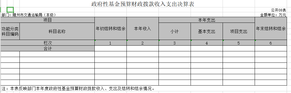 隨州市交通運(yùn)輸局(本級(jí))無(wú)政府性基金性收支。