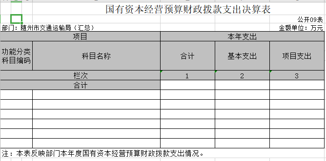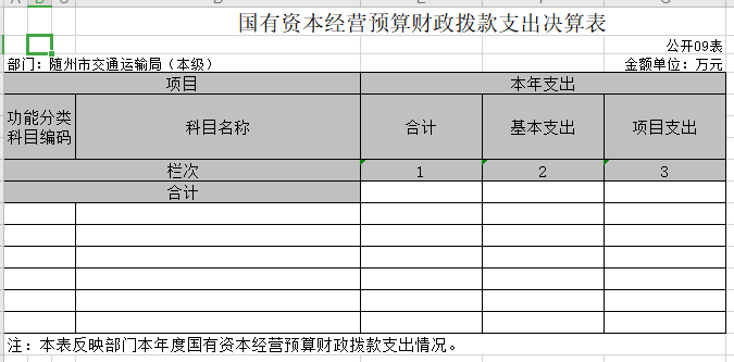 九、國(guó)有資本經(jīng)營(yíng)預(yù)算財(cái)政撥款收入支出決算表(公開(kāi)表09)