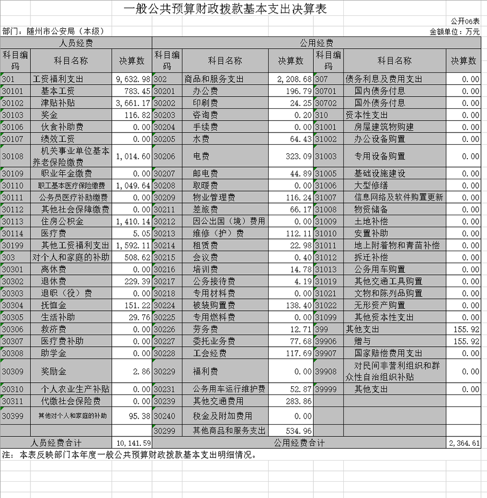 注:隨州市公安局匯總無國有資本經(jīng)營預(yù)算財(cái)政撥款
