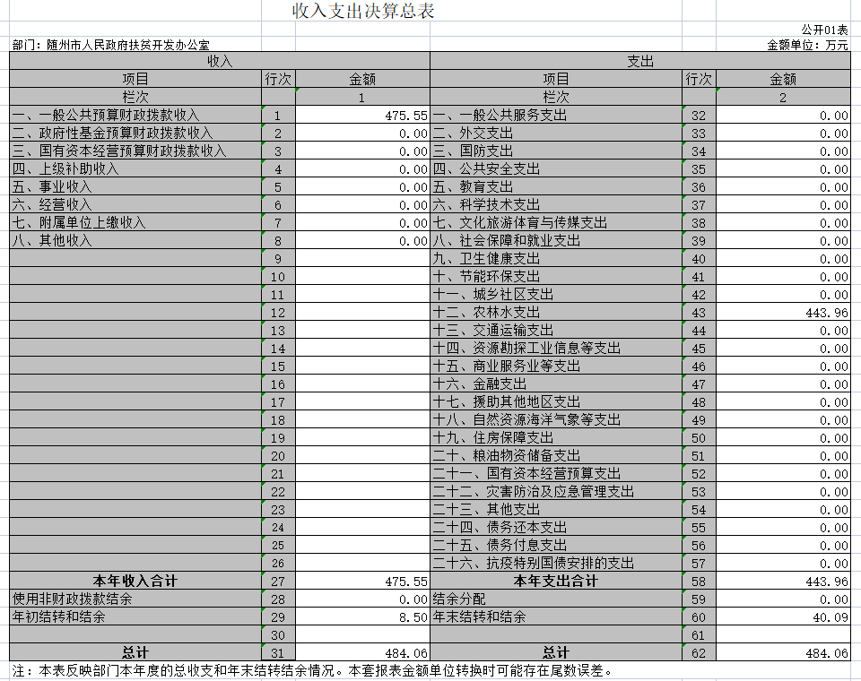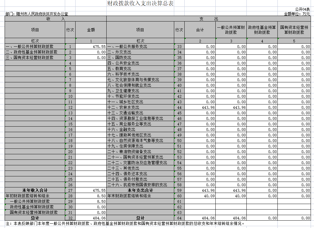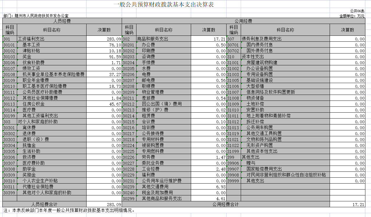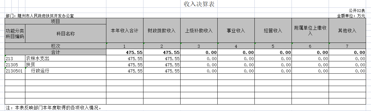 第三部分?隨州市人民政府扶貧開發辦公室2020年部門決算表