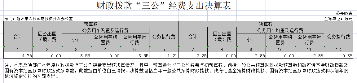 七、財政撥款“三公”經費支出決算表(公開表07表)