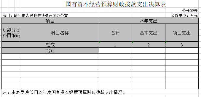 九、國有資本經營預算財政撥款支出決算表(公開表09表)