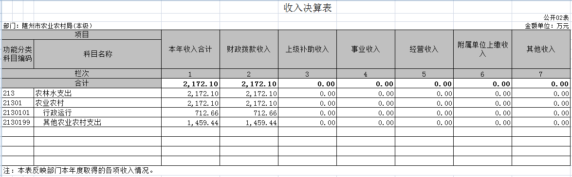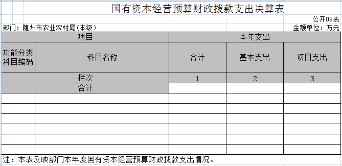 隨州市農業農村局(匯總)2020年無國有資本經營預算財政撥款收入和支出,故國有資本經營預算財政撥款支出決算表(公開09表)無數據。