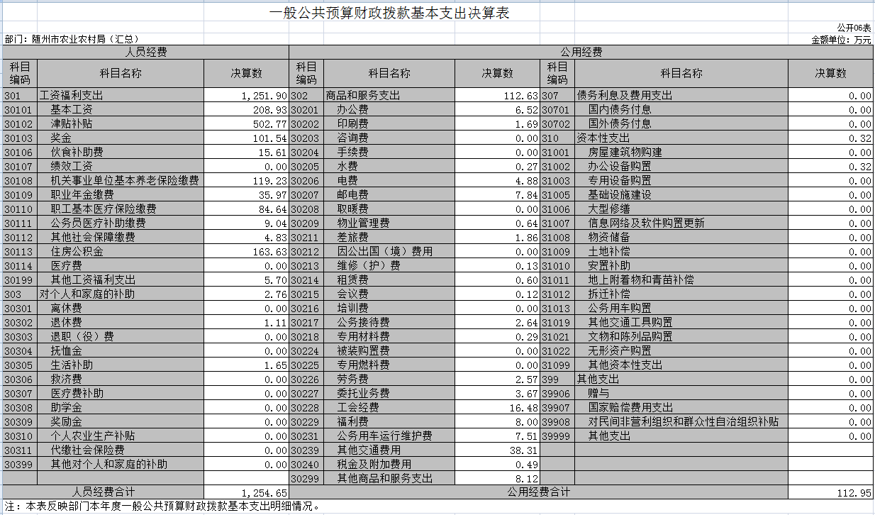 第二部分 ?隨州市農業農村局2020年部門決算情況說明