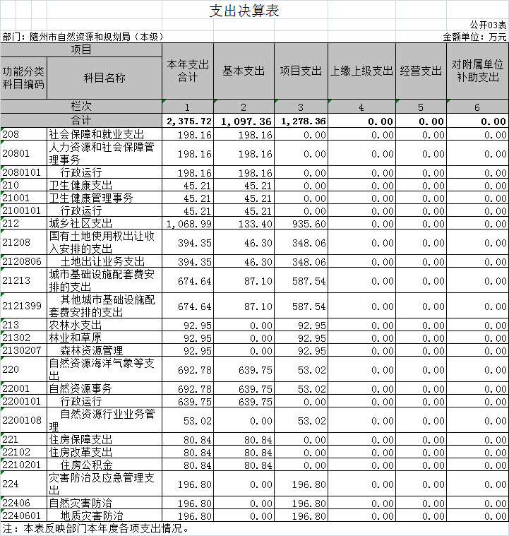 第三部分、隨州市自然資源和規(guī)劃局2020年部門決算表