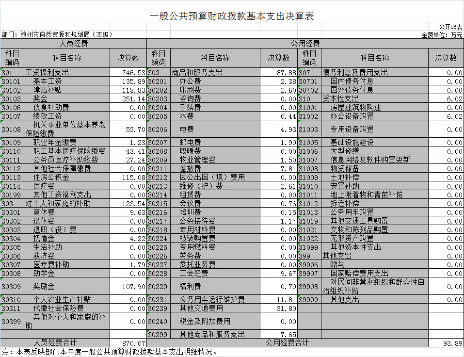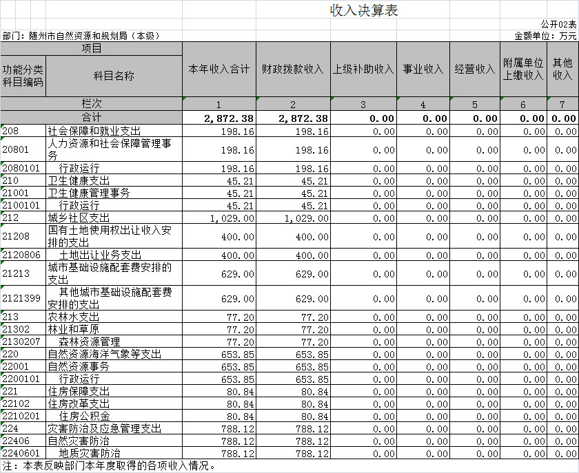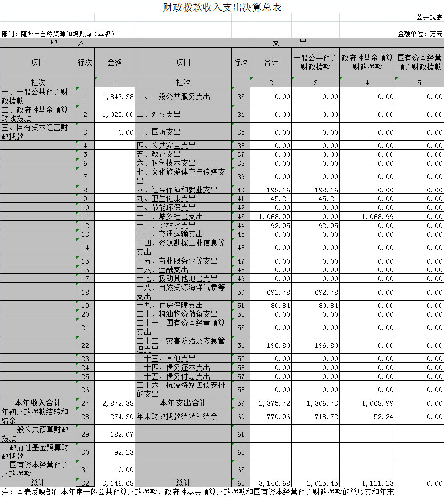 第三部分、隨州市自然資源和規(guī)劃局2020年部門決算表(含匯總表)