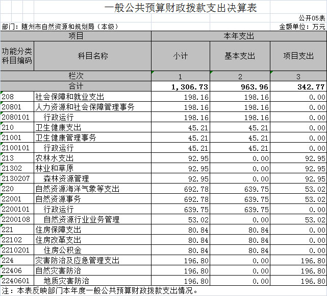 五、一般公共預(yù)算財(cái)政撥款支出決算表(公開(kāi)表05表)