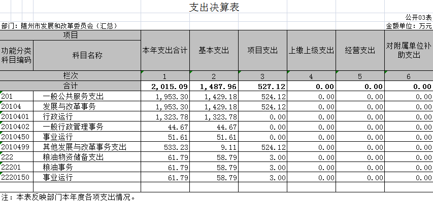2020年度一般公共決算支出1886.52萬元,比年初預算1715.88萬元增加170.64萬元,其中:基本支出1339.08萬元,比年初預算807.88萬元增加531.2萬元,項目支出388.92萬元,比年初預算908萬元減少519.08萬元。原因:基本支出較預算增加原因為追加了2020年在職及退休人員五項獎勵工資;項目支出較預算減少原因一是固定資產投資項目委托咨詢評估費年初預算210萬元,2020此項工作采取委托第三方評估機構進行并由財政部門審核撥付,實際撥付金額;二是儲備糧油補貼項目年初預算400萬元,由財政直接撥付390.99萬元。基本支出比去年增加287.75萬元,項目支出比去年增加45.13萬元。原因:基本支出及項目支出較上年增加原因為2019年正值機構改革,隨州市軍糧供應中心2019年未納入發改委二級單位。