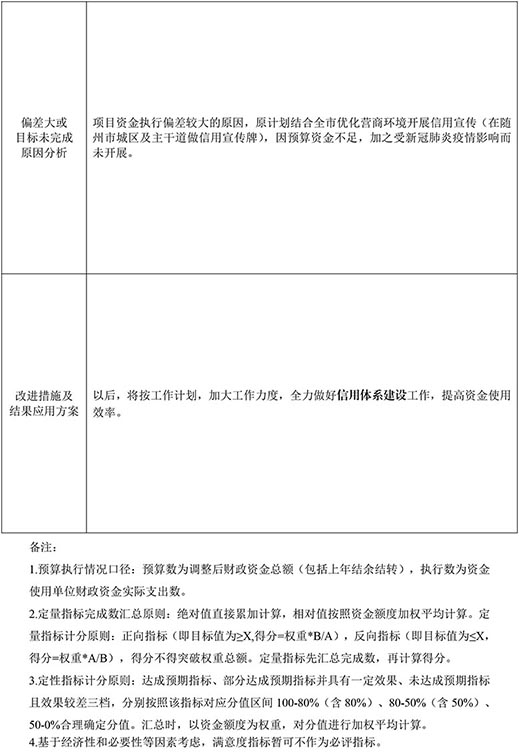 針對2020年績效自評中存在的主要問題。一是部分項目支出預算前,要加強調查研究分析,尤其是較大的支出、結余資金要分析原因,根據需要合理預測所需資金,避免在執行中出現偏差。二是加強預算執行過程中的監管、日常調度和督導,推動各個項目工作,提高工作質量和項目資金的使用效率、效益。