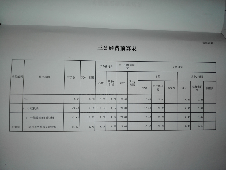 2015年 “三公” 經費預算43.63萬元。其中:因公出國(境)費20萬元,無財政撥款;公務接待費1.57萬元,相比2014年部門決算數下降55%;公務用車維護費22.06萬元,相比2014年部門預算數持平,全年無車輛購置費。
