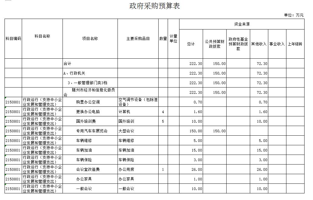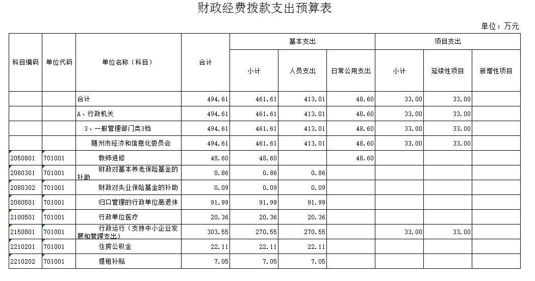 依據《隨州市財政局關于下達2016年市直部門預算的通知》,2016年隨州市經信委預算指標如下: