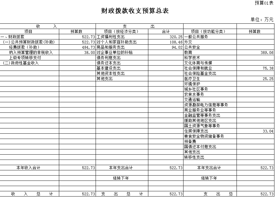 2016年公共財政預算財政撥款522.73萬元,主要用于工資福利支出320.25萬元、對個人和家庭補助支出108.46萬元、商品和服務支出94.02萬元。