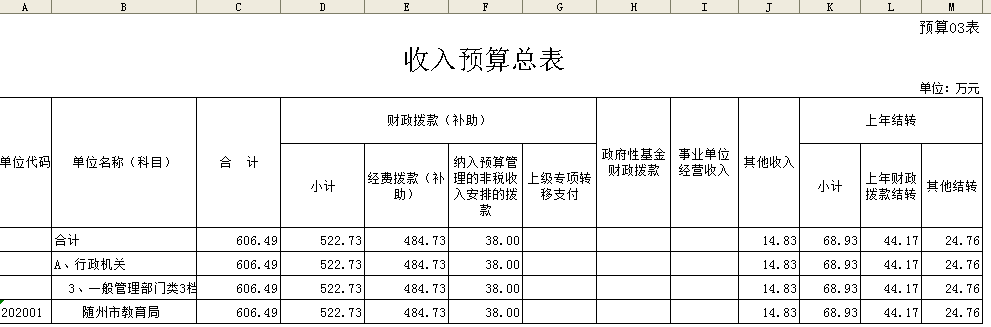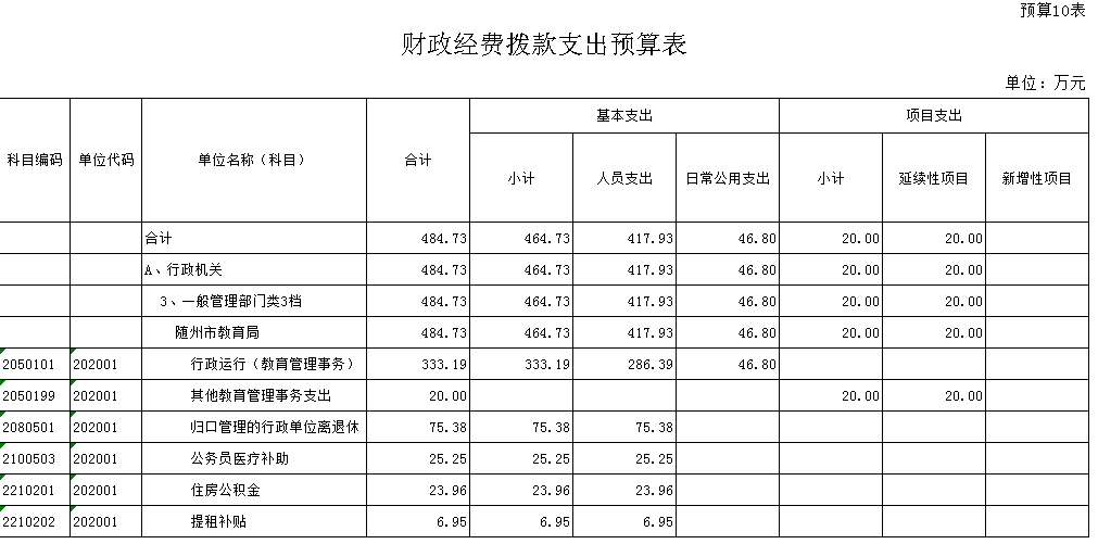 隨州市教育局2016年財政預算公開