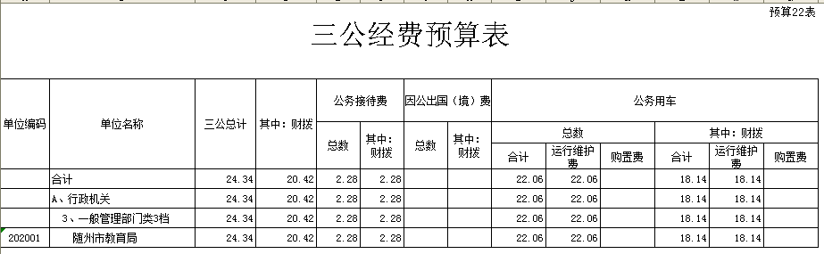 “三公”經費預算數為24.34萬元,比上年27.34萬元減少3萬元。其中公務接待費2.28萬元,與上年2.28萬元持平;因公出國(境)費0萬元,上年預算6萬元,原因是上年局領導跟隨市領導因公出國在預算項目中列支;公務用車運行維護費22.06萬元,比上年19.06萬元增加3萬元,主要原因本年公務用車使用時間較長,計劃大修一次,維修費有所增加。