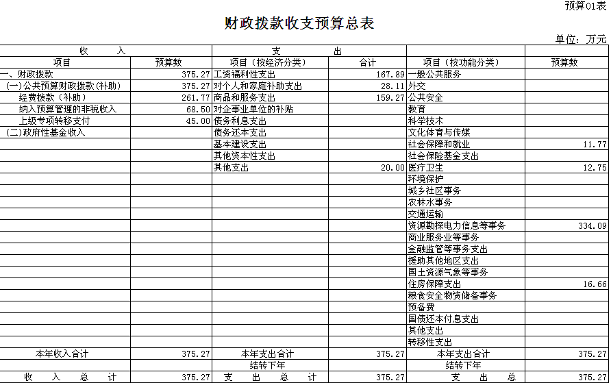 2016年支出預算375.27萬元,其中:工資福利支出167.89萬元,其它支出207.68萬元。