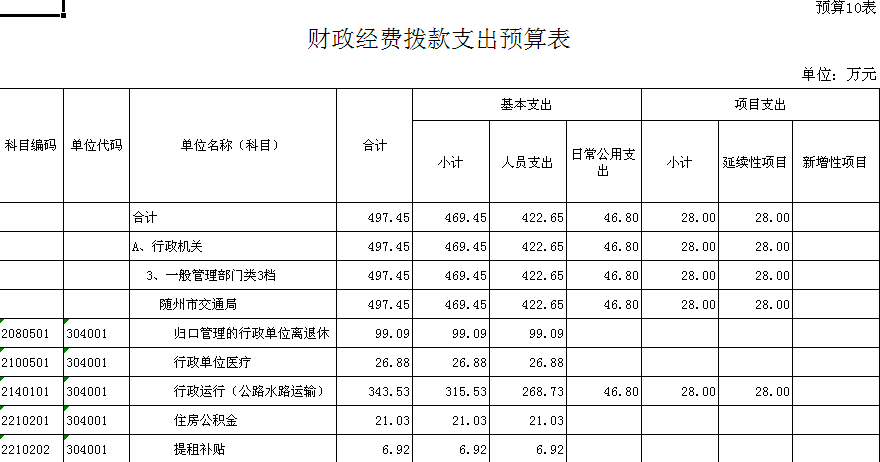 交通運輸局設8個內設機構:辦公室、政工人事科、運輸安全科、綜合計劃科、縣鄉道管理科、基建科、財務科、審計科機關行政編制為28名。另核定機關“以錢養事”崗位3個(含曾都分局1個)。