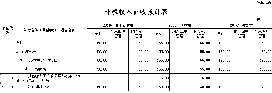 按照預算管理的有關規定和編制原則,2016年納入隨州市物價局預算編報范圍的包括:市物價局行政單位全部收入和支出;單位構成為市物價局機關本級:辦公室(政策法規科)、農產品與環境資源價格科、收費管理科、工業品與服務價格科、成本調查監審科(隨州市物價局成本調查監審分局)。