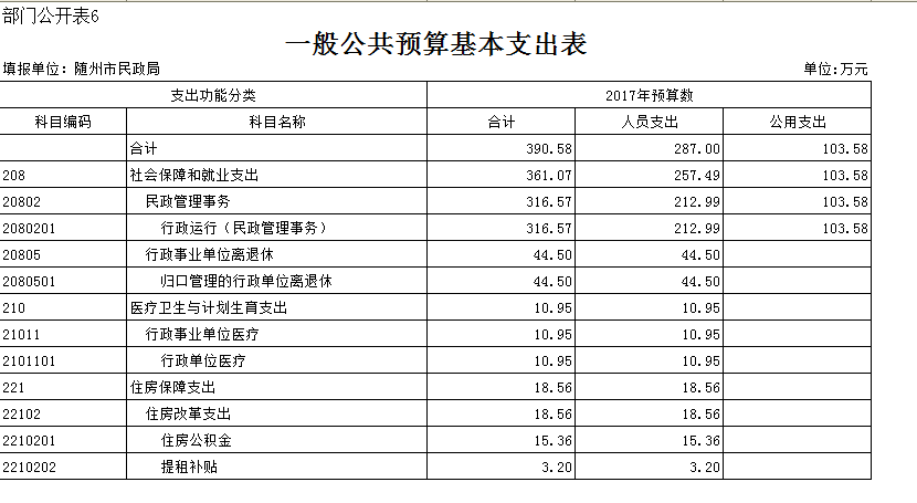 2017年預算中,我局總預算為2192.99萬元。基本預算支出為395.66萬元,其中:人員支出292.08萬元,公用支出103.58萬元。