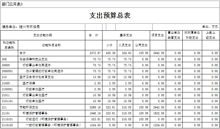 節能環保支出(類)環境保護管理事業(款)行政運行(項):指環保局行政單位及參照公務員法管理的事業單位,用于保障機構正常運行、開展日常工作的基本支出。