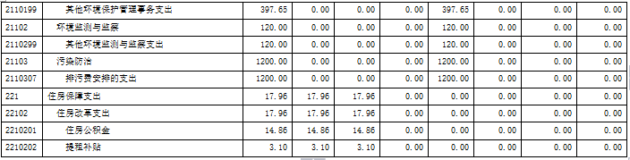 節能環保支出(類)環境監測與監察(款)其他環境監測與監察支出(項):指全市生態建設及環境管理工作;全市輻射環境安全監督管理工作;環境監測業務管理及監測人員技能培訓;全市環境監測網絡運行費及環境監測質量監管工作等支出。