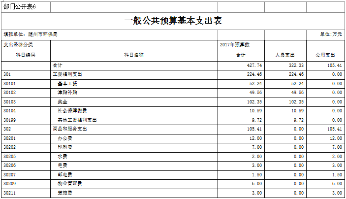 2017年度環保局系統匯總辦公費17.6萬元、印刷費9.28萬元、郵電費8.5萬元、差旅費11.5萬元、會議費5.65萬元、福利費9.8萬元、日常維修費9.91萬元、辦公用房水電費18.8萬元、辦公用房物業管理費7.95萬元、公務用車運行維護費12.95萬元、其他商品服務支出38.24萬元。