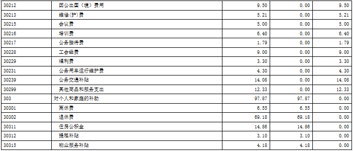 局機關本級預算辦公費12萬元、印刷費7萬元、郵電費1.5萬元、差旅費3萬元、會議費5萬元、福利費3.3萬元、日常維修費5.21萬元、辦公用房水電費5萬元、辦公用房物業管理費6萬元、公務用車運行維護費4.30萬元、其他商品和服務支出12.33萬元,日常公用支出比上年增加12.95萬元,增長14.01%,主要因為公車改革新增公務交通補貼和本年度預算增加了因公出國(境)費用等。