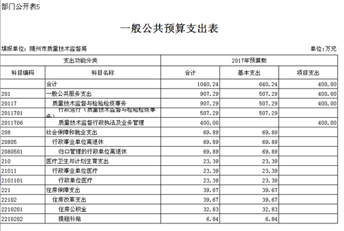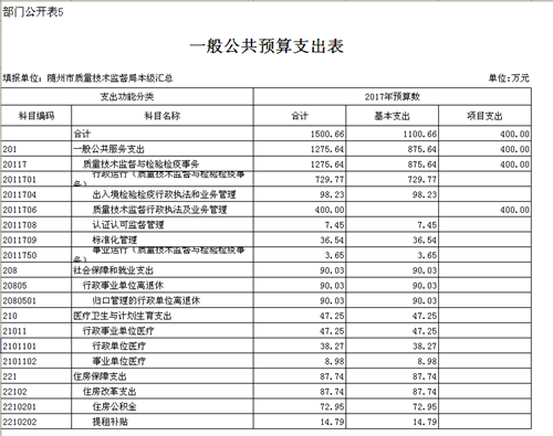 第三部分 隨州市質量技術監督局2017年部門預算表