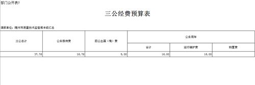 2017年隨州市質量技術監督局本級匯總“三公”經費年初預算安排80.84萬元,含一般公共預算安排37.76萬元。其中: