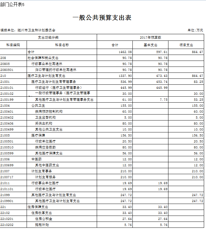 市衛生計生委2017年預算編報說明