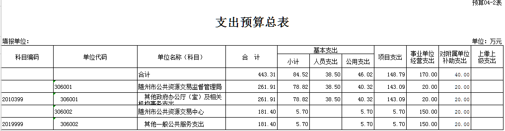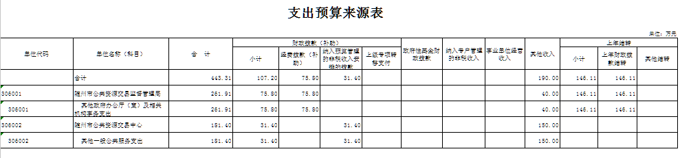 隨州市公共資源交易監督管理局2017年支出預算總額261.91萬元,其中一般公共服務支出78.82萬元,項目支出143.09萬,事業單位經營支出40萬元。較去年支出預算總額減少18.4萬元,減少2%。