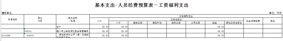 隨州市公共資源交易監督管理局2017年度預算機關運行經費40.32萬元,比上年減少8.57萬元,減少9%。其中:辦公費0.55萬元,印刷費0.08萬元,水費0.11萬元,電費0.46萬元,郵電費0.10萬元,取暖費0.17萬元,物業管理費0.20萬元,差旅費12.72萬元,因公出國(境)費用15萬元,,會議費0.50萬元,培訓費0.60萬元,公務接待費0.43萬元,公務交通補提9.30萬元,其他商品和服務支出0.10萬元。