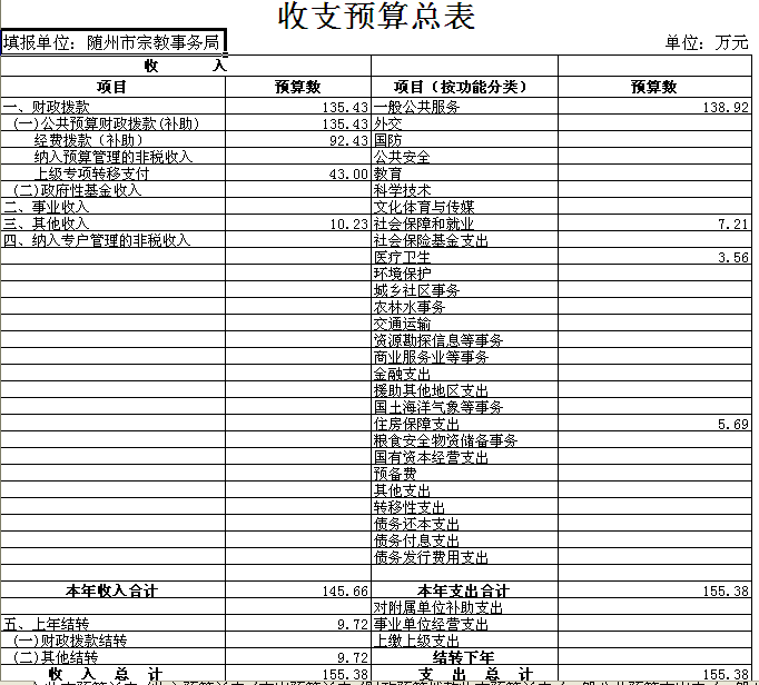 市民宗局2018年預(yù)算收入總計155.38萬元,其中財政撥款(補助)92.43萬元,其他收入10.23萬元,上年結(jié)轉(zhuǎn)9.72萬元,上級專項轉(zhuǎn)移支付43萬元,較上年預(yù)算安排增加31.24萬元,增加25%,增加原因是上級轉(zhuǎn)移支付資金增加。