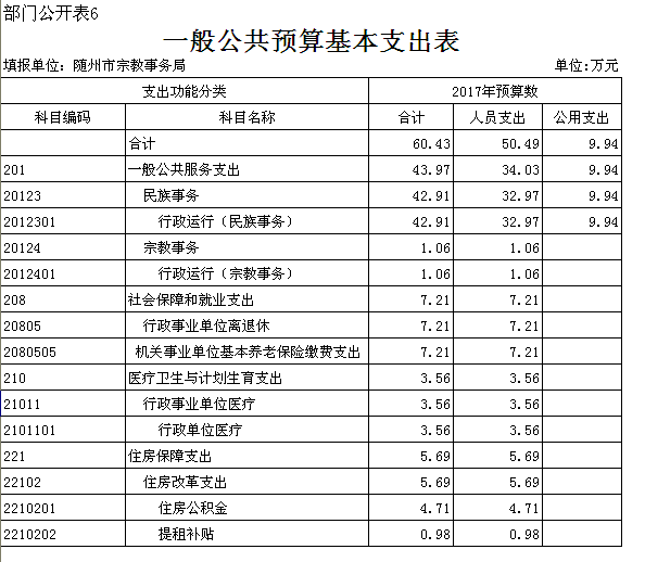 2210202 一般公共服務(wù)(類)住房改革支出(款)提租補貼支出(項):指市民宗局用于對機關(guān)個人和家庭的補助支出。