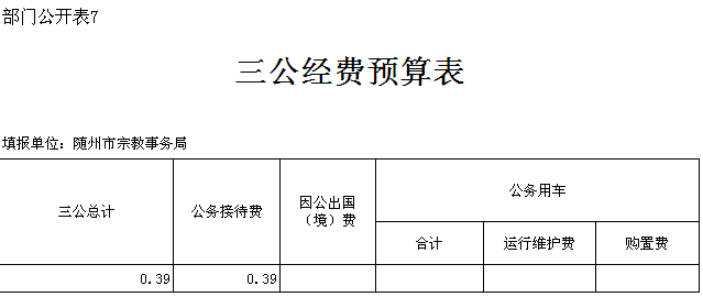2018年隨州市民宗局“三公”經(jīng)費年初預(yù)算安排0.39萬元。比上年減少0.41萬元,減少51%,原因是財政預(yù)算減少。其中: