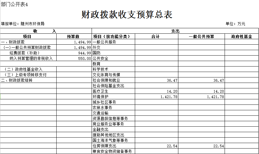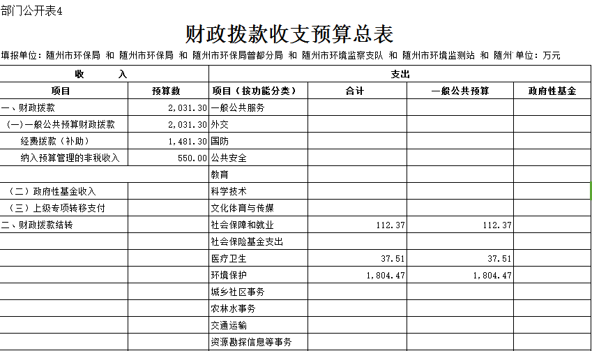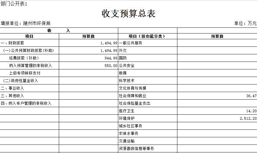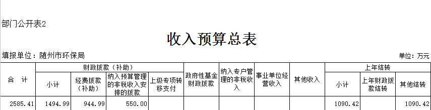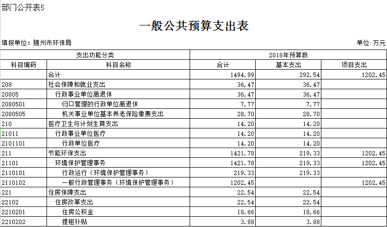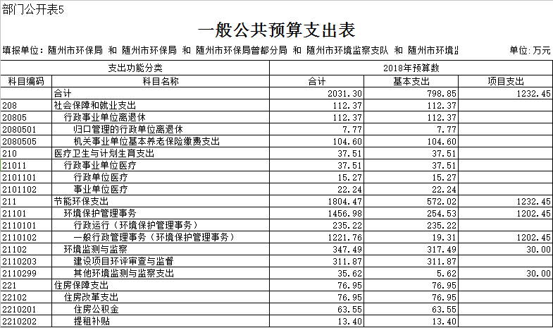 隨州市環保局2018年部門預算